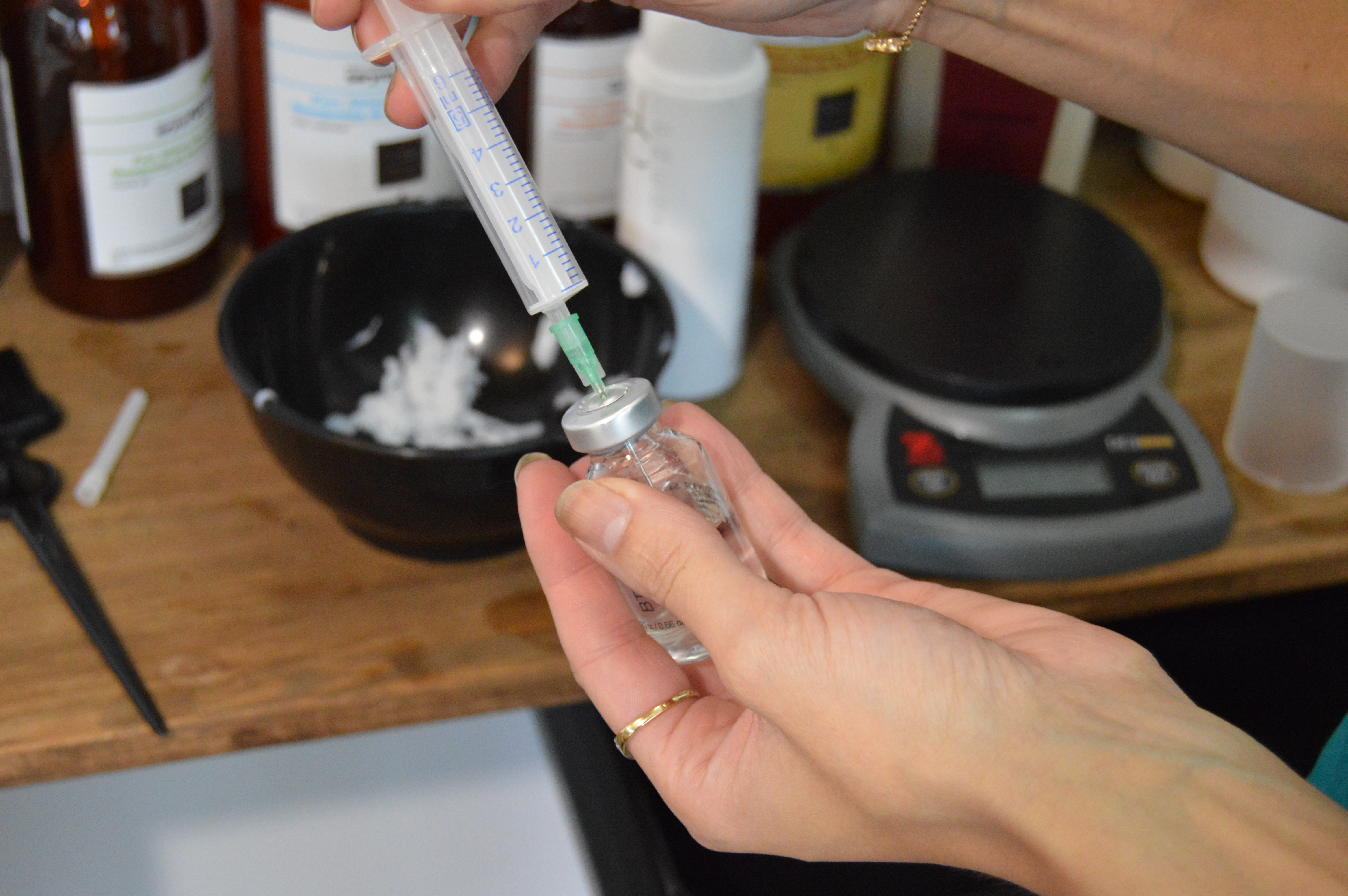 Étape 1 : La préparation du soin à appliquer sur les cheveux préalablement lavés.