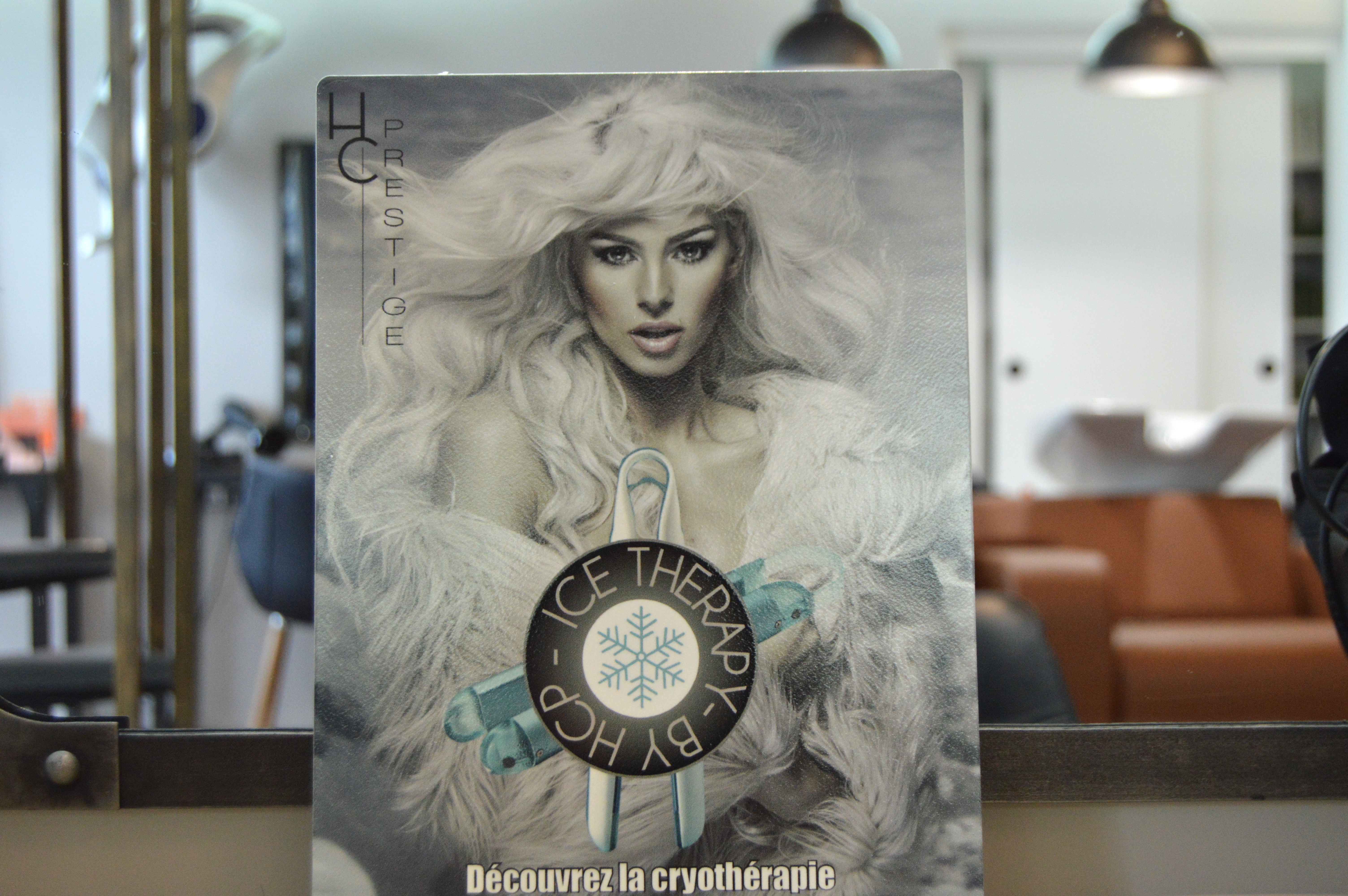 Je suis retournée samedi dernier pour tester un tout nouveau concept, la cryothérapie de HC Prestige. Qu-est-ce que cette chose ? C’est tout simplement un traitement par le froid pour faire pénétrer en profondeur le soin dans la fibre capillaire. On utilise le lisseur inverse, qui est froid. Cette technique de soin agit aussi bien pour un effet anti âge de la fibre capillaire, et permet aussi de les rendre plus doux et brillants.